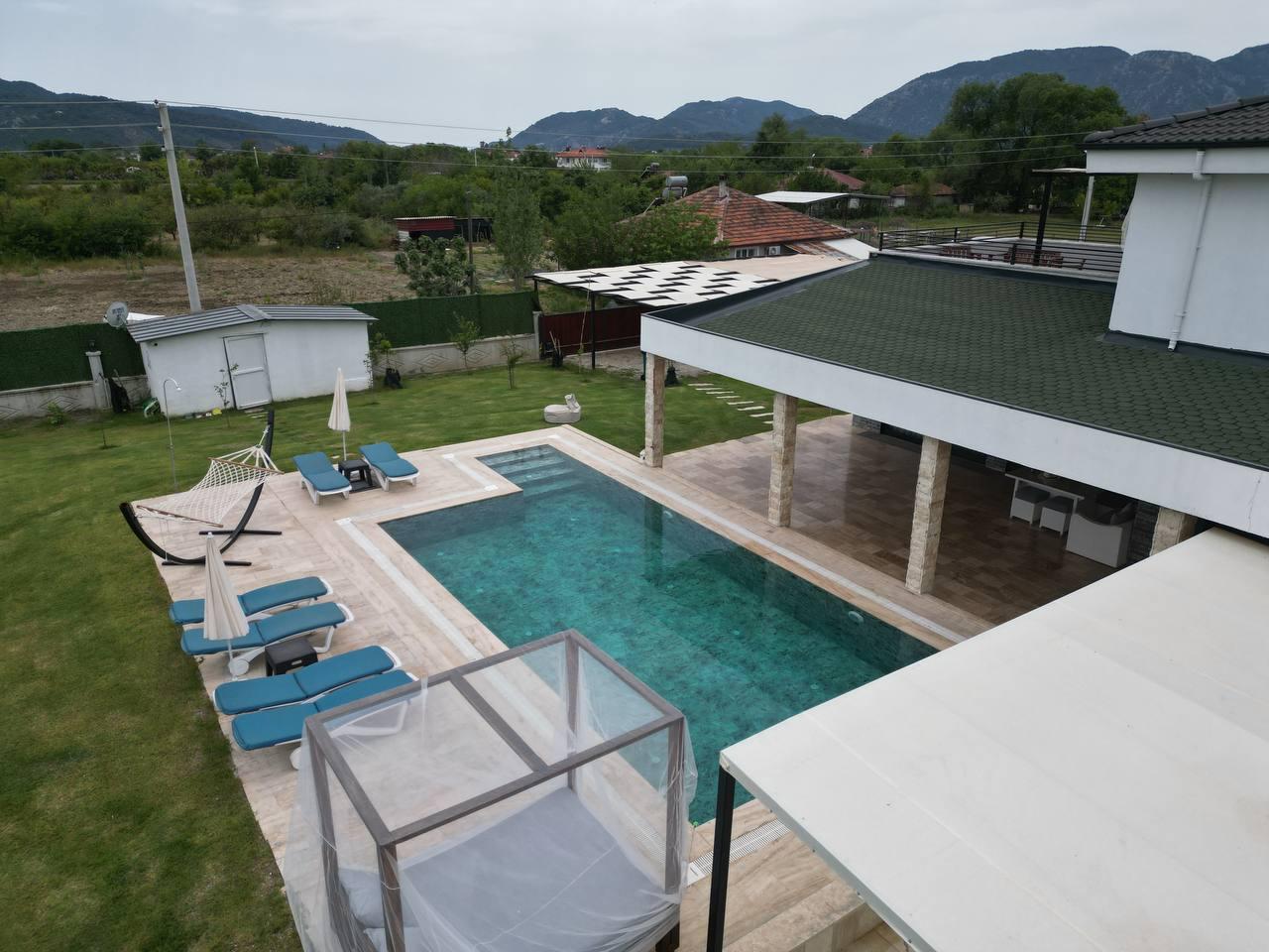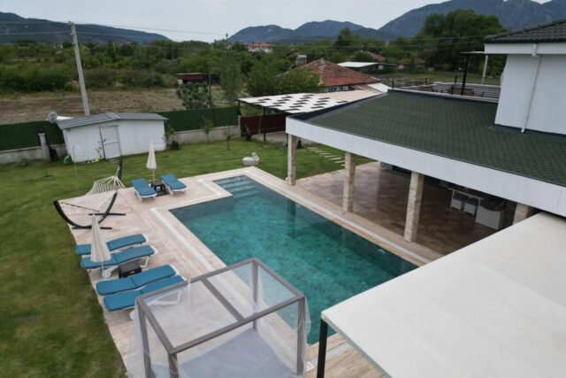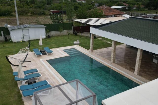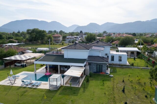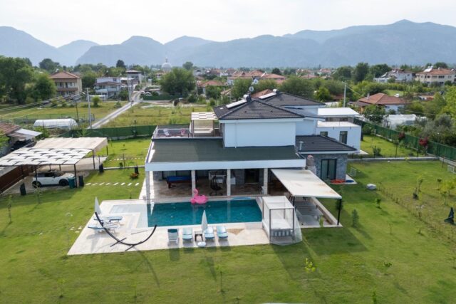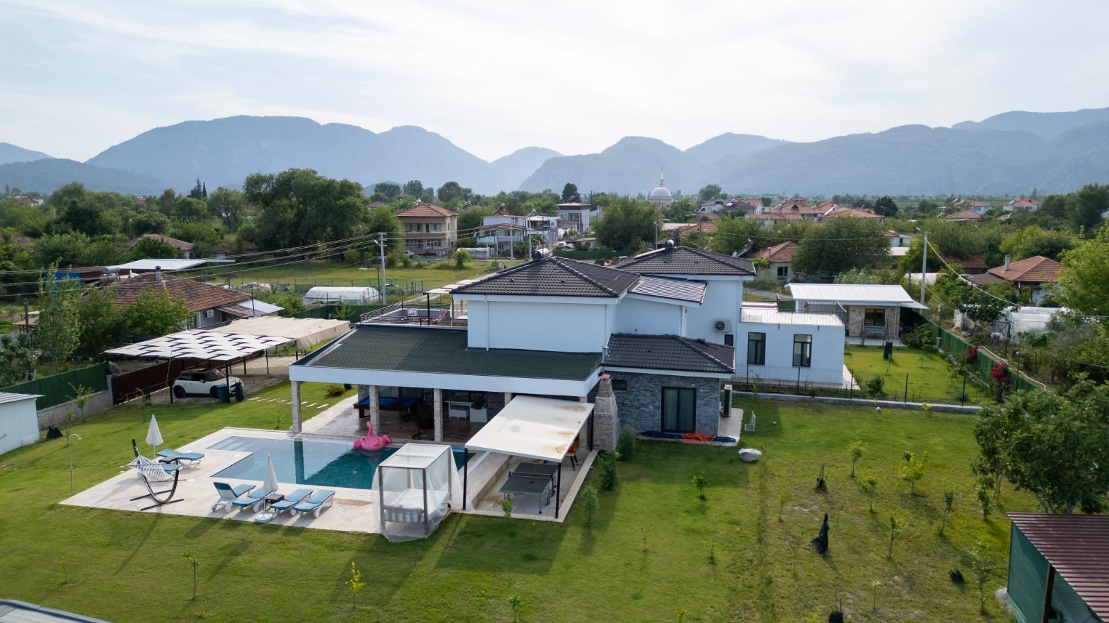 Located in the peaceful and residential area of Ortaca Güzelyurt, this exceptional property offers both outstanding living comfort and remarkable investment potential. Set on a 2,500 m² private plot, the estate consists of a 165 m² luxury villa with private pool and three independent bungalow/tiny house units, each designed for privacy and comfort.