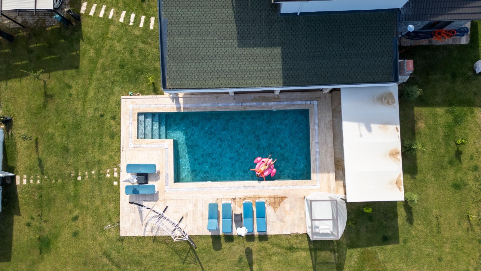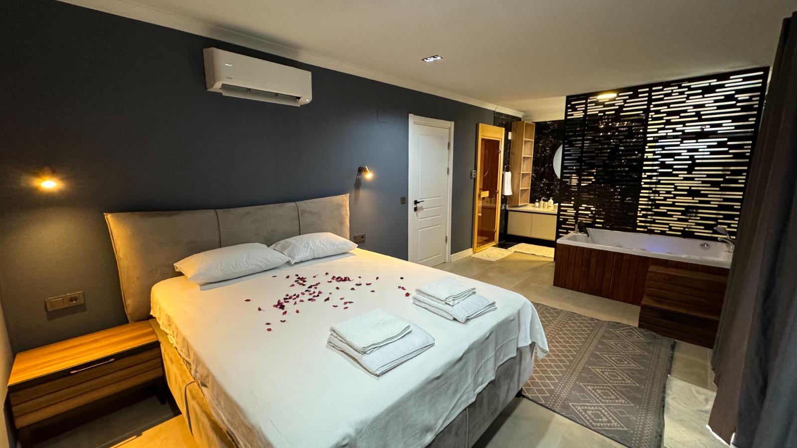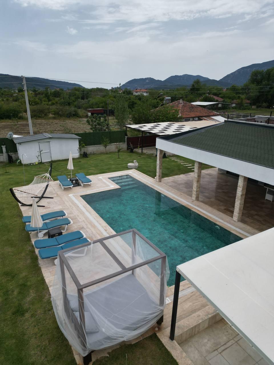 Located in the peaceful and residential area of Ortaca Güzelyurt, this exceptional property offers both outstanding living comfort and remarkable investment potential. Set on a 2,500 m² private plot, the estate consists of a 165 m² luxury villa with private pool and three independent bungalow/tiny house units, each designed for privacy and comfort.