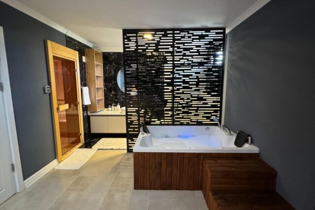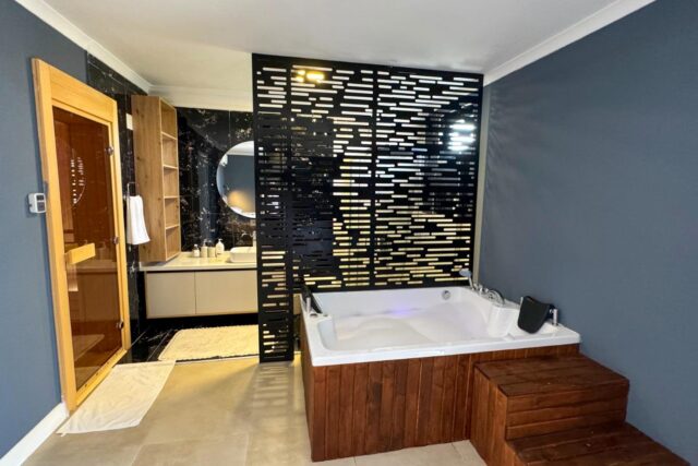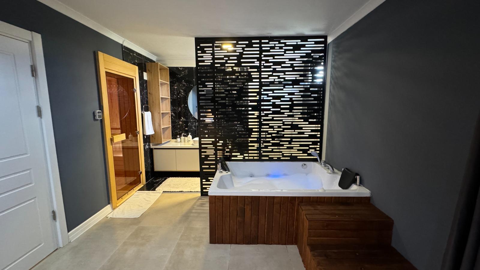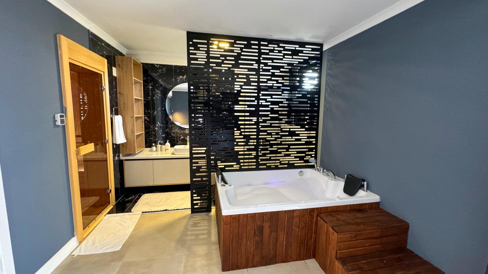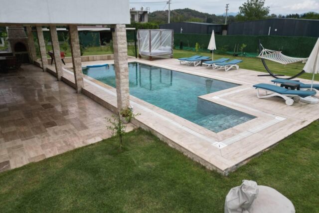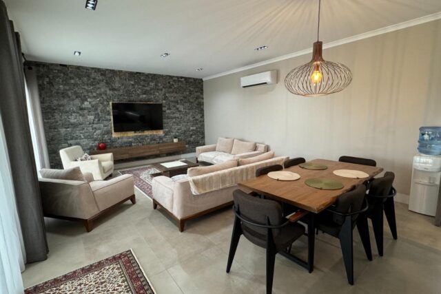 The main villa features a spacious master suite, sauna, jacuzzi, modern bathroom, large living area, expansive terrace and social amenities such as billiards and table football. Outdoors, a specially designed swimming pool and beautifully landscaped garden with lemon trees create a serene atmosphere.
