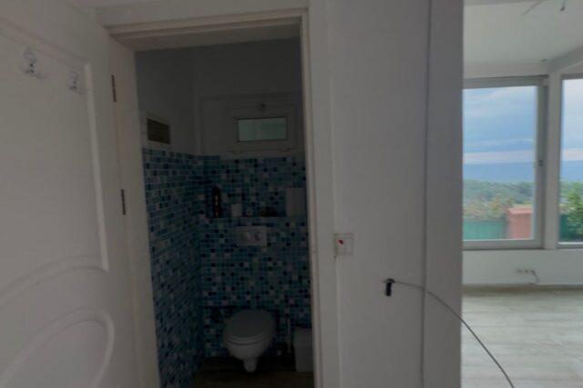 The villa also features a balcony and a terrace, both benefiting from open sea views, with the terrace offering particularly impressive outlooks.