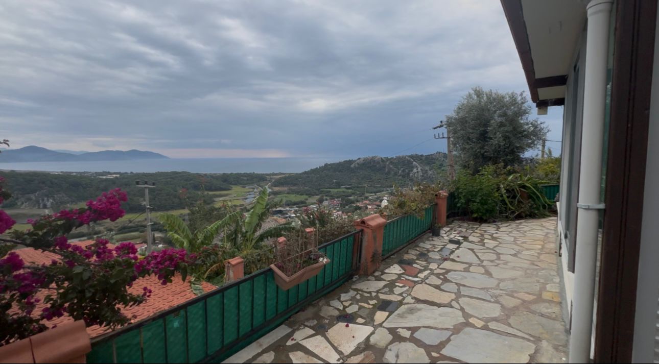 Located in Sarıgerme, Ortaca, this well-maintained villa offers full sea and nature views, including sea views from the terrace — a rare advantage in the area.