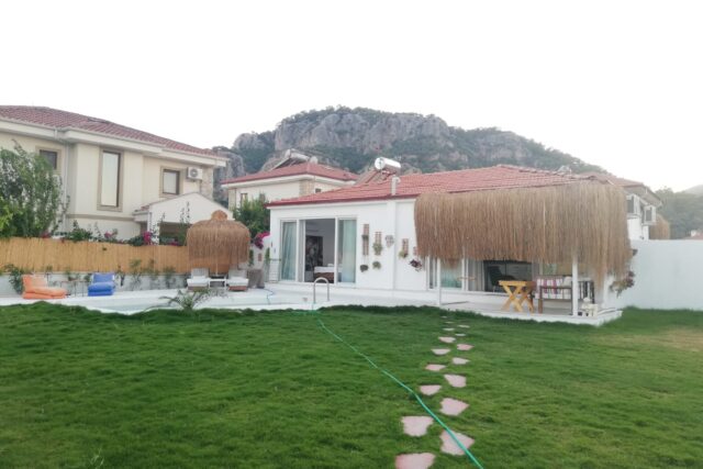 Villa Fairdale is a modern and fully secluded 1 bedroom private pool villa located in the heart of Dalyan offering direct walking access to restaurants markets the riverside and the town centre without the need for a car Designed for couples and small families the villa comfortably accommodates 3 to 4 guests It features one spacious bedroom a living room with an open plan kitchen a modern bathroom air conditioning and high speed WiFi The kitchen is fully equipped with a fridge hob kettle and essential cookware The outdoor area is completely private with a fully secluded swimming pool and a terrace with a jacuzzi providing total comfort and relaxation The pool terrace includes sunbathing and seating areas suitable for daytime or evening use Villa Fairdale is only a few minutes walk from Dalyan town centre and also offers easy access to the river Kaunos Rock Tombs and transportation points to Iztuzu Beach It is the ideal option for guests seeking privacy comfort and a central location Couples honeymooners and small families enjoy a peaceful and exclusive stay at Villa Fairdale For booking and information Holidays in Dalaman