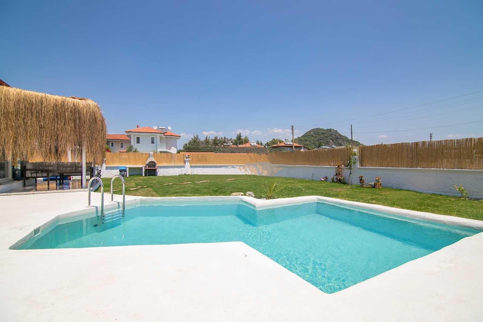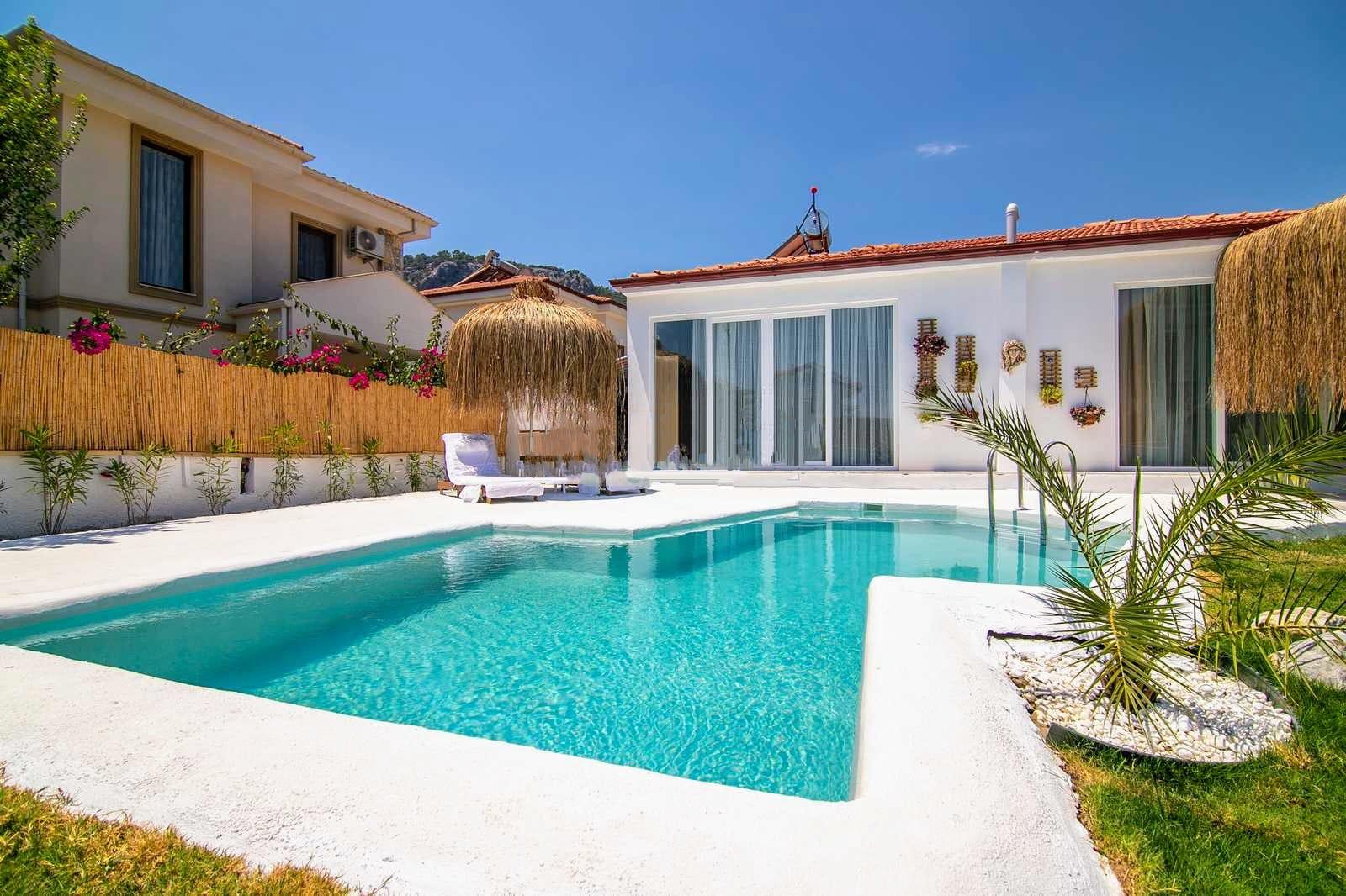 Villa Fairdale is a modern and fully secluded 1 bedroom private pool villa located in the heart of Dalyan offering direct walking access to restaurants markets the riverside and the town centre without the need for a car Designed for couples and small families the villa comfortably accommodates 3 to 4 guests It features one spacious bedroom a living room with an open plan kitchen a modern bathroom air conditioning and high speed WiFi The kitchen is fully equipped with a fridge hob kettle and essential cookware The outdoor area is completely private with a fully secluded swimming pool and a terrace with a jacuzzi providing total comfort and relaxation The pool terrace includes sunbathing and seating areas suitable for daytime or evening use Villa Fairdale is only a few minutes walk from Dalyan town centre and also offers easy access to the river Kaunos Rock Tombs and transportation points to Iztuzu Beach It is the ideal option for guests seeking privacy comfort and a central location Couples honeymooners and small families enjoy a peaceful and exclusive stay at Villa Fairdale For booking and information Holidays in Dalaman